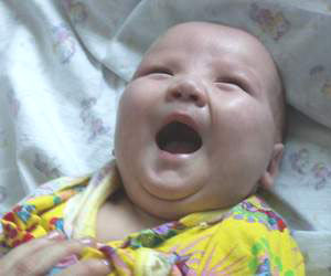 Держит головку на животике, гулит, улыбается (иногда смеется), пытается садится.